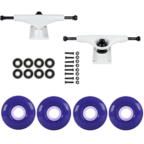 Studio : TGM Skateboards Publisher : TGM Skateboards Binding : Misc. Product Description Set up your new deck or upgrade you current one with this Trucks/Wheel/Bearing/Hardware package! Included in this package is a set of 4 52mm Polyurethane Skateboard wheels from a leading manufacturer in the industry. Coming in at 97A, these are the perfect wheels for street and park skating. Also included is a set aluminum 5.0 Havoc trucks. These trucks fit on boards from 7.3" to 8.1" wide. To finish out the package we include a set of precision abec 7 bearings and 1" hardware. 0