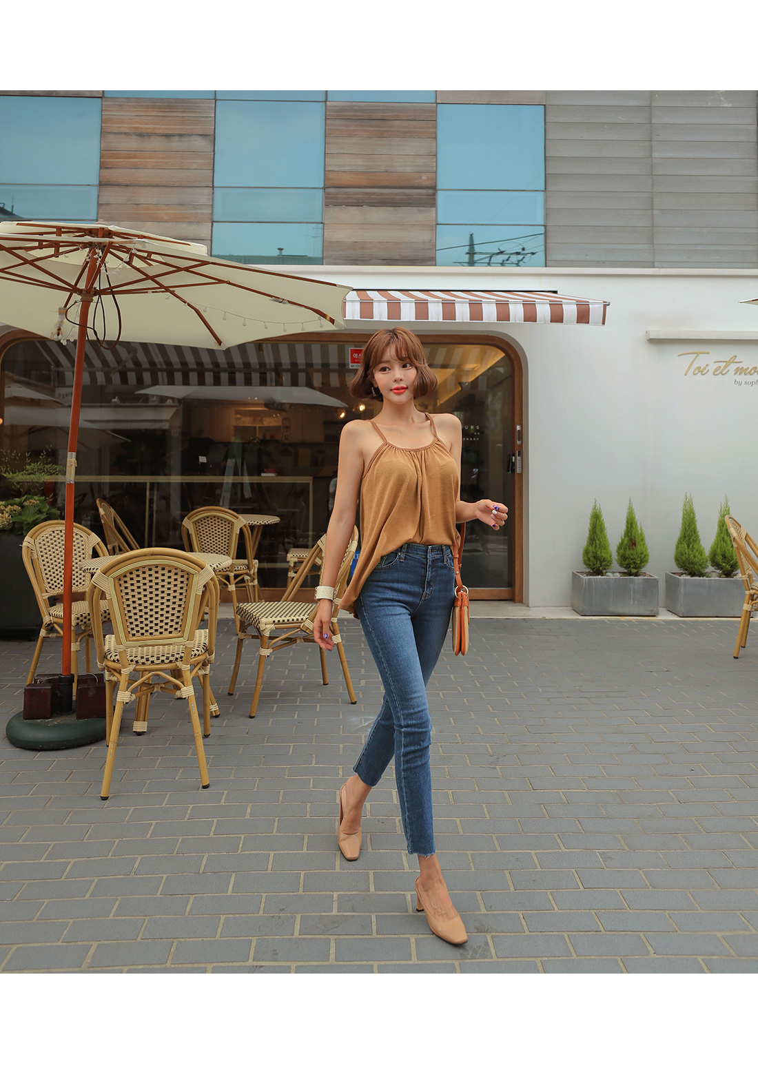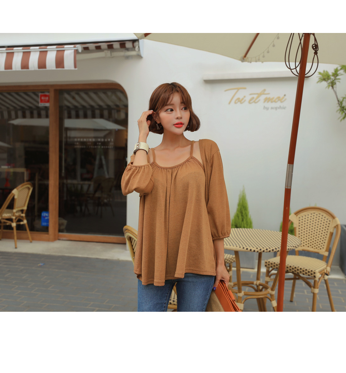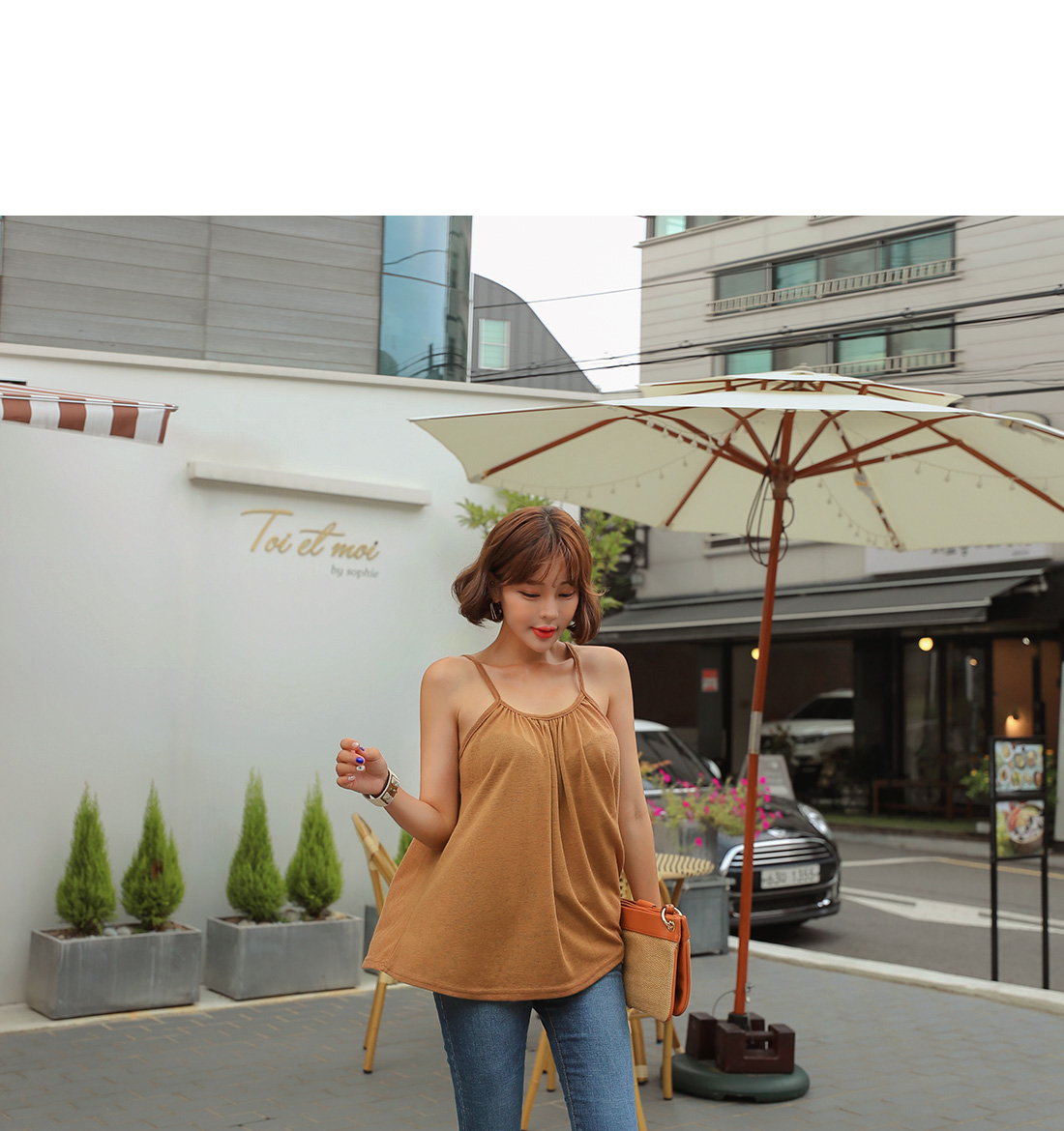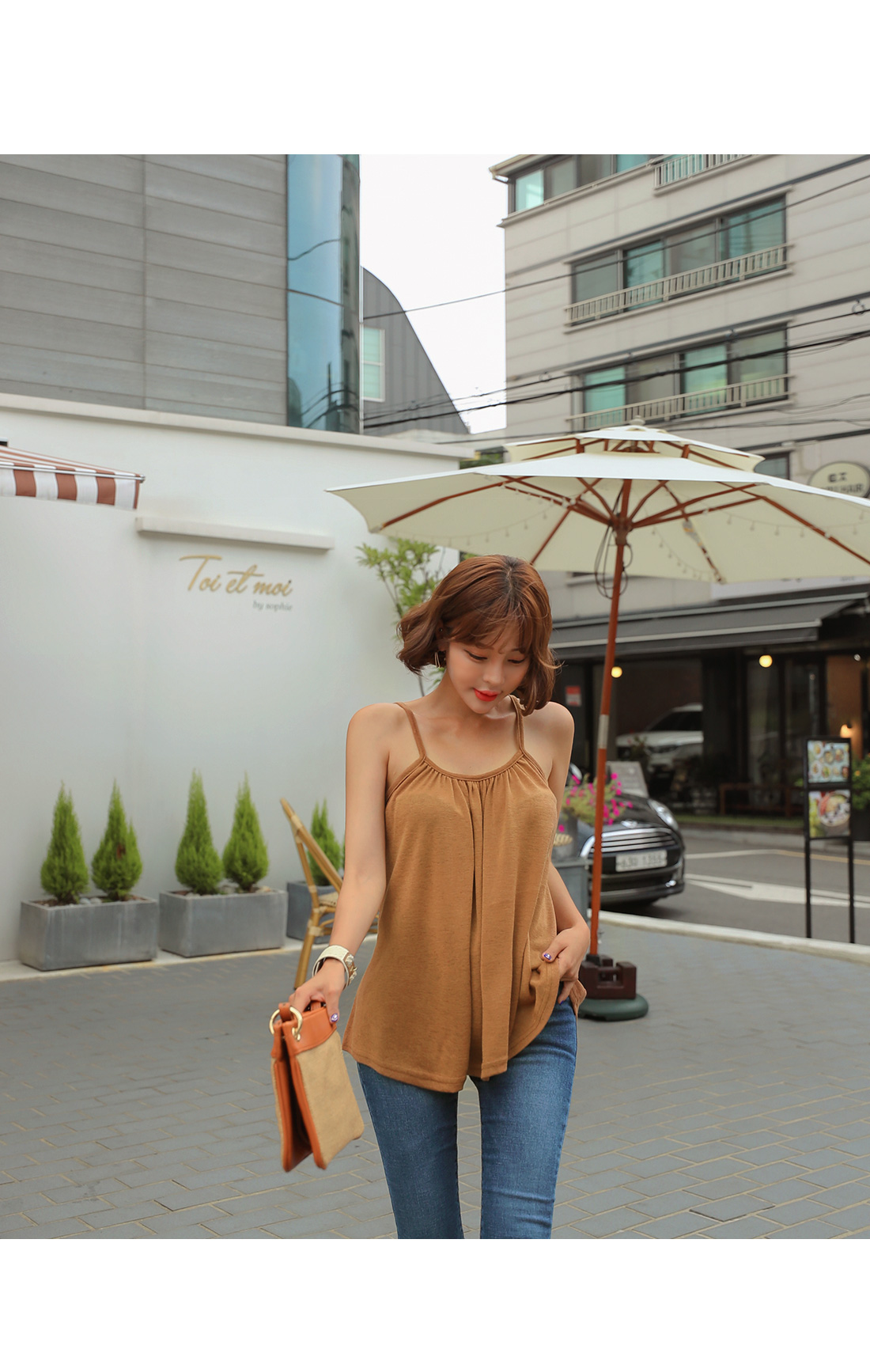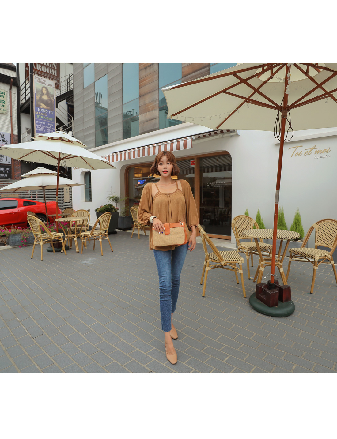 낮게 드롭된 숄더라인으로 여리여리한 느낌을 더해주었으며