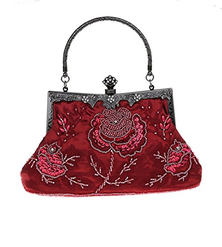 -. Title : Bopstyle Women's Sequin Beaded Party Clutch Vintage Rose Purse Evening Handbag