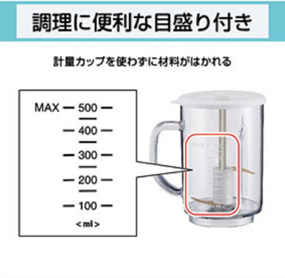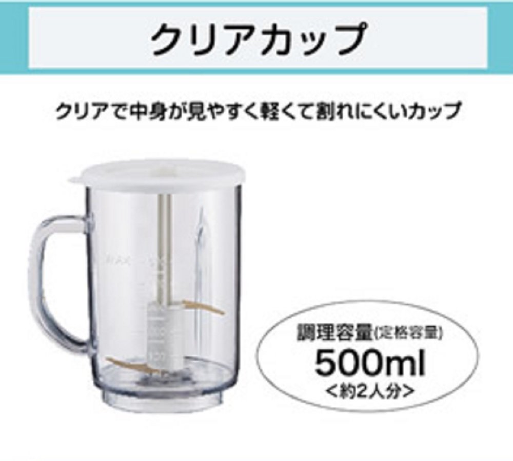 ● Easy to make, 1, set the material and blade in the clear cup, 2, set the cup in the body, 3, press the switch to stop with the desired roughness.