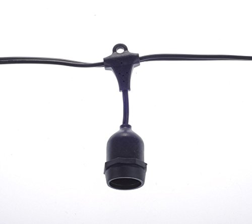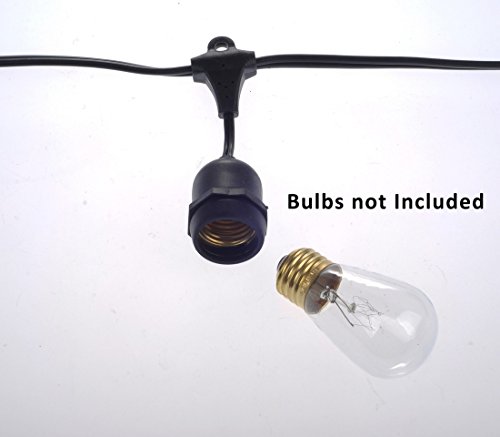 48Foot Outdoor Weatherproof String Lights with 24 Hanging Sockets, Commercial Grade Heavy Duty Light Strand for Patio, Porches, Pergolas, Bistro, Black Wire (Bulbs Not Included)