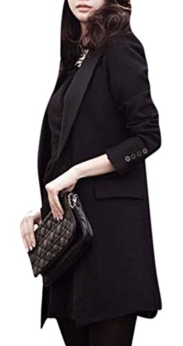 -. Title : lingswallowレディースエレガントブラックスリムフィットボタンブレザージャケットロングトレンチコート