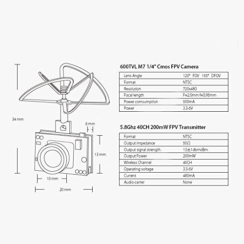 원본상품명: Eachine tx02スパミニFPVカメラAIO 5.8G 40CH 200mW VTX 600tvl 1/ 4CMOS FPVカメラwithアンテナfor FPVクアッドコプタDr