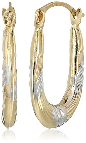 10k Yellow Gold Diamond Cut Oval Hoop Earrings