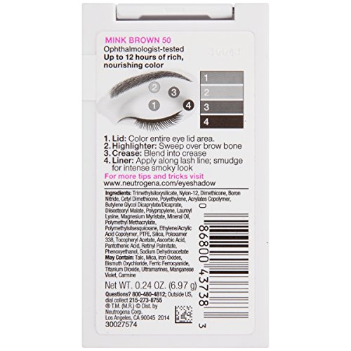 Neutrogena Nourishing Long Wear Eye Shadow Plus Primer, Mink Brown, 0.24 Ounce