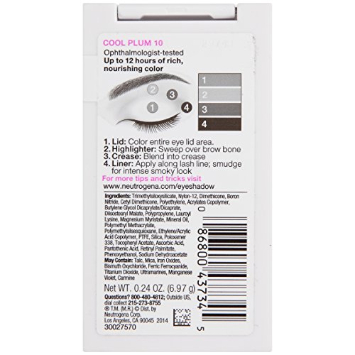 Neutrogena Nourishing Long Wear Eye Shadow Plus Primer, Cool Plum, 0.24 Ounce