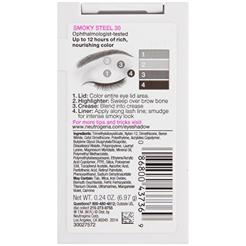 Neutrogena Nourishing Long Wear Eye Shadow Plus Primer, Smoky Steel, 0.24 Ounce