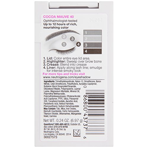 Neutrogena Nourishing Long Wear Eye Shadow Plus Primer, Cocoa Mauve, 0.24 Ounce