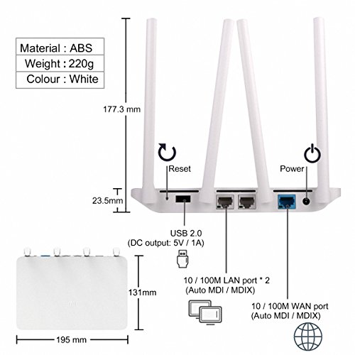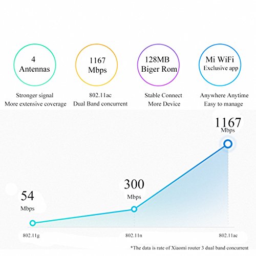 Xiaomi Router 3, OLLIVAN 1167Mbps 2.4G/5G Dual Band 802.11ac Wireless Router English Version, WiFi Repeater Router 3 App Control Wireless Network Device 128MB Flash ROM with 4 Antennas(white)