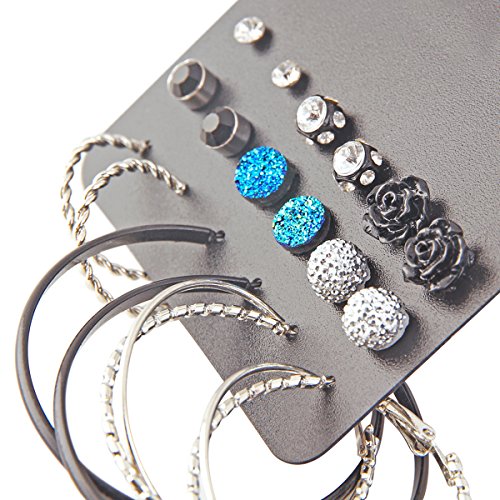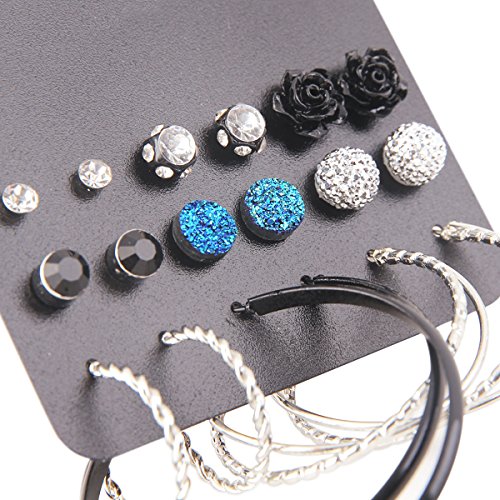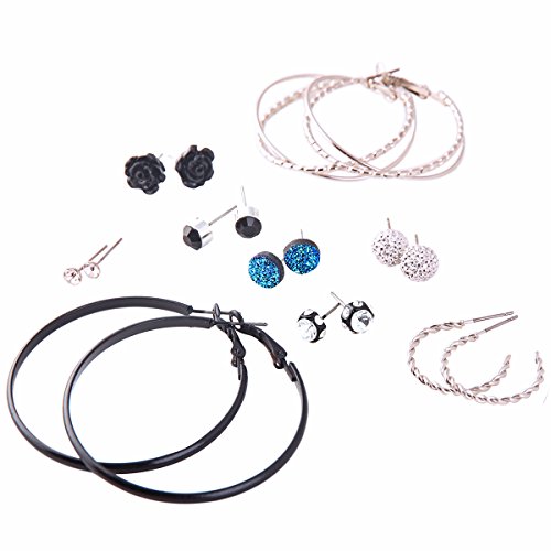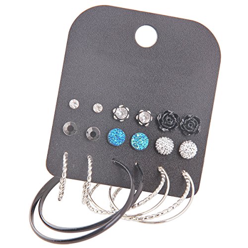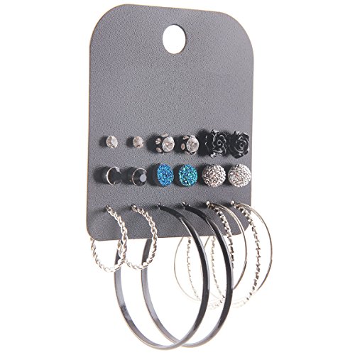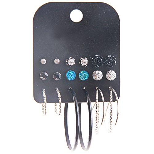 6 Pairs Stud Earrings and 3 Pairs Hoop Earrings