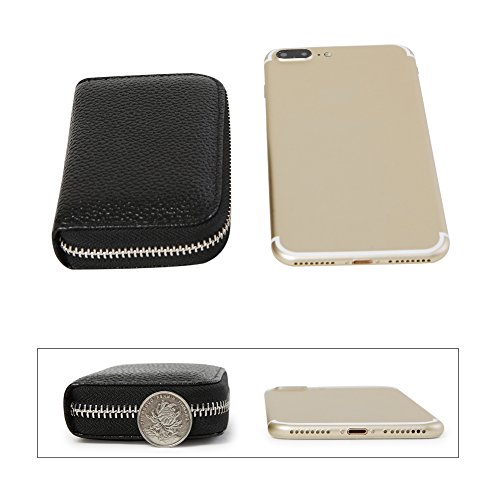 -. Feature : Structure: 11 Card Slots (9 Separated Inside Slots, 2 Side Spaces) / Measures: Length: 4.52"(11.5cm), Width: 3.15"(8cm), Thickness: 0.78"(2cm), Weight: 80g / Size: It Is Bulky In Pants / Front Pocket, Perfect Fit In Handbag / Material: Soft Cow Split Leather Featuring Pebble Grain
