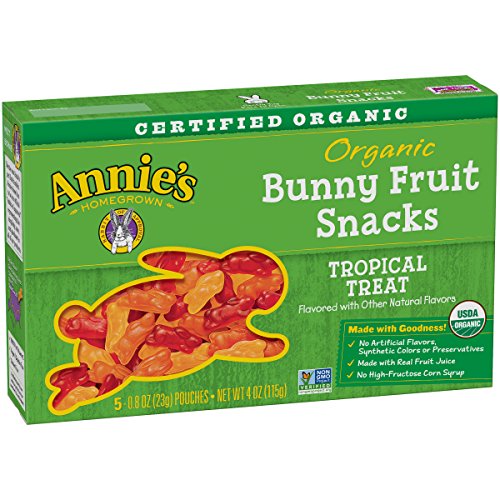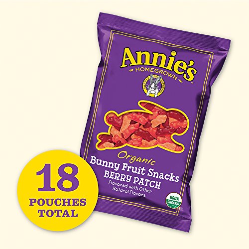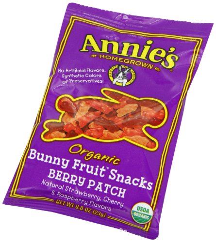 Organic Berry Patch Bunny Fruit Snacks are a delicious mix of strawberry, cherry and raspberry flavored bunnies. Certified organic, these vegan and gluten-free bunny-shaped fruit snacks are made with real fruit juice and packed with 100% Daily Value of Vitamin C.