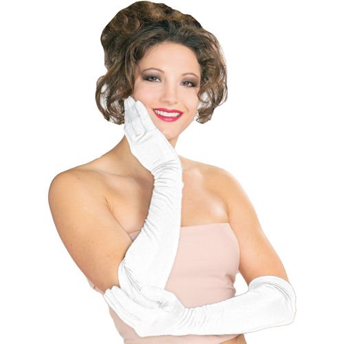 -. Title : Long White Polyester Gloves