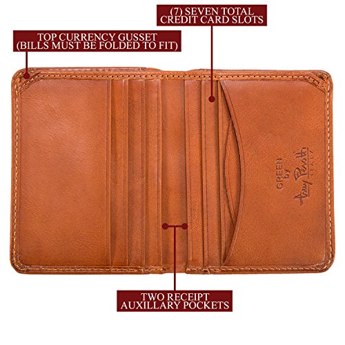 PRODUCT FEATURES: -Single Currency Divider Gusset -Seven credit card slots, two receipt slots -Dimensions: 3"(L) x 4"(H) x 0.5"(W). Weight: 0.45lbs