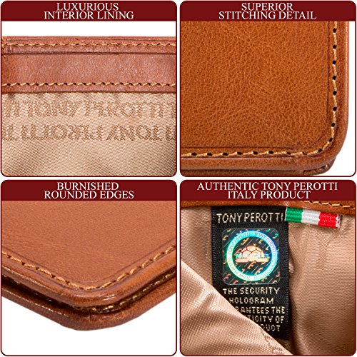Since 1970 Tony Perotti has been constantly introducing styles that set future trends while maintaining a firm footing in the noblest Italian traditions of leather craft. All of our Tony Perotti products are made from carefully selected genuine Italian full grain hides, tanned in the most recognized expertise and leather craftsmanship based on ancient and noble Italian artisanship. The cool Italian weather prevents any flea or tick irritation to the animals, attributing to the top quality and purity of the leather without any scratches or bites. The tanning process utilizes an eco-friendly approach by using vegetable extracts without the use of toxic or polluting substances. This vegetable tanning process allows the leather to retain its natural look and feel, as well as beautifying and maturing over time to develop a pleasant patina that gives the wallet an antique look as it gets older. It also allows the leather to be easily manageable and maintained, as the vegetable oils and dye can cover any scratches or marks on the leather by rubbing it off with a fine cloth or leather cleaning lotion. We are certain that you will love and appreciate our products. Thank you for being part of this tradition!