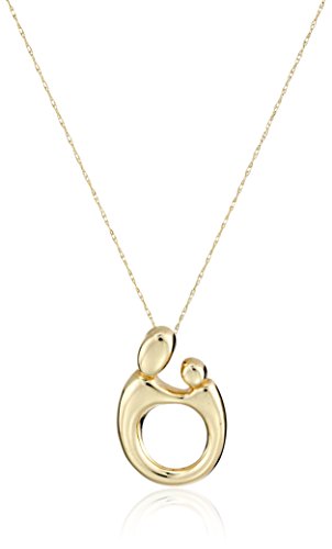 Yellow gold necklace featuring polished mother-and-child pendant suspended from rope chain