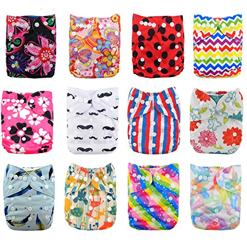 Studio : Huapin Publisher : Huapin Binding : Baby Product Product Description Product Details Style of diaper: One size Pocket Material: 1,Outer - A waterproof breathable PUL 2,Inner - Suede cloth: Suede cloth wicks moisture away from baby's bottom. It is an excellent choice next to baby's skin for pocket style cloth diapers. Liquid passes right through suede cloth into the inner absorbent layers of the insert. Unlike fleece there is no pilling. 3,Insert - 5-layer Charcoal Bamboo Reusable Inserts Pocket diapers are easy to use, machine washable and dryable 1,The bottom three rows of snaps (the rise) are for adjusting the size to fit a small (8-15 lb), medium (12-25 lb), or large (20-35 lb) child. Simply adjust the size as your baby grows make this diaper a one size style diaper from birth to potty training 2,Length of nappy:39cm in length X 35cm in width,for babies weighing 3-15kg Package included: 12 diapers 12 inserts One Wet Bag 4pcs Baby Wipes. Color: as pictured 0