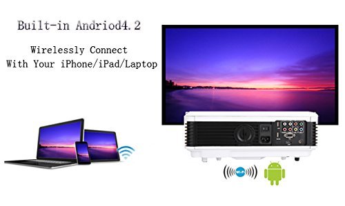 EUG X88+ android4.2 built-in wifi projector with 3600 Lumens, 3500:1 Contrast Ratio and 1280 x 800 Native Resolution. 170W LED Lamp above 50,000 hours. Two 5W Built-in Speakers. No matter for home theater, office use, school use or for paty, this one will be the best choice. The projector is directly sold from factory and now for promotion, high quality with the best price!!!