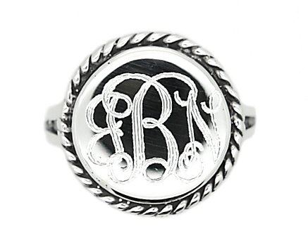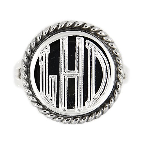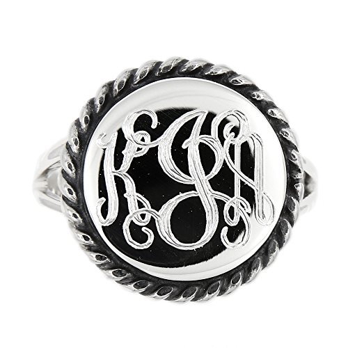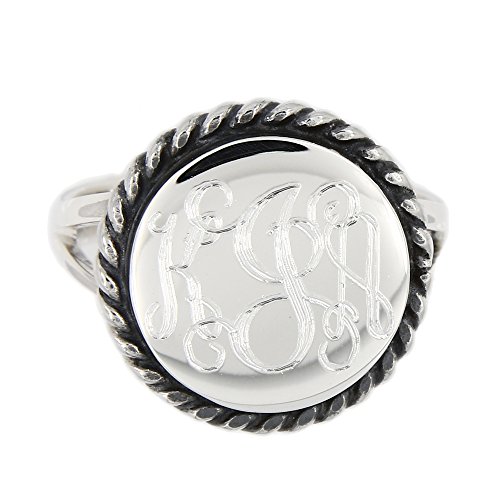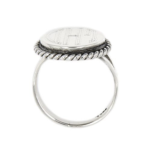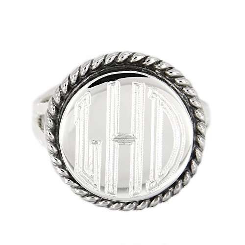 -. Title : ELIML(TM) Sterling Silver Personalize Monogram Signet Round Rope Edge Ring with Engraving