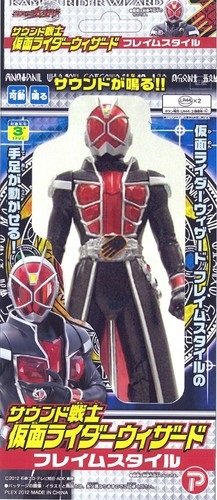 仮面ライダーウィザードフレイムスタイルがサウンド戦士に!背中のボタンを押すと効果音が鳴り響く!手足可動のリアルタイプヒーロー。