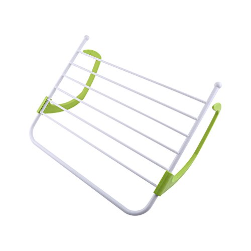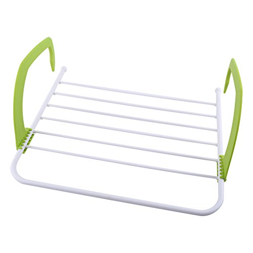 Outdoor Indoor Clothes Drying Rack Easy Install Folding Clothes Dryer Rank Hanging on Corridor Balcony Bathroom Windowsill Guardrail (GREEN)