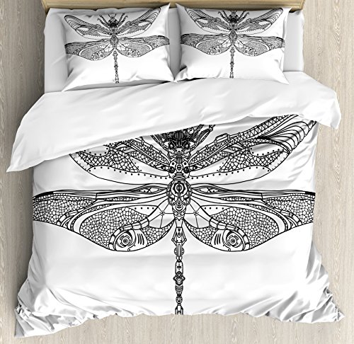 (Ambesonne)/Bedding Bath/Bedding/DIRECT FROM USA/Dragonfly Queen Size Duvet Cover Set by Ambesonne, Artistic Baroque Patterned Ornamental Dragon...