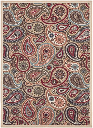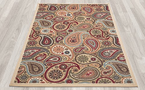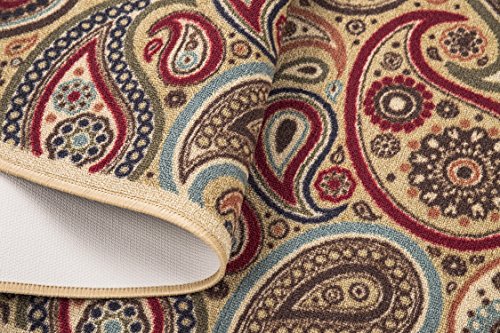 - Feature : Design: contemporary-paisley design / Colors: beige / Non-skid rubber back, machine washable, power loomed construction with nylon pile, soil and stain resistant, easy to vacuum low pile / Long lasting quality with vivid colors that wont fade away