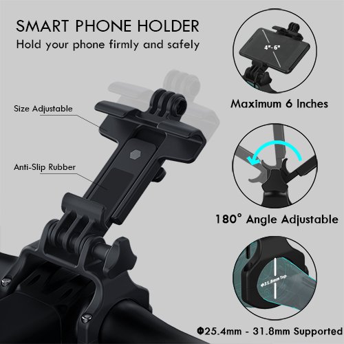 ADJUSTABLE SMARTPHONE BRACKET - Our waterproof speed and cadence sensors come with an adjustable smartphone bracket for diameter 25.4~31.8 mm handlebars. Maximum 6" smartphone supported. The cellphone bracket works perfectly with you iPhone 5/6/6s/7/7 plus, s3/s4/s5/s6/s6 edge+/s7/s7 edge, one plus 3/3T. Also, the mobile phone bracket is angle adjustable.