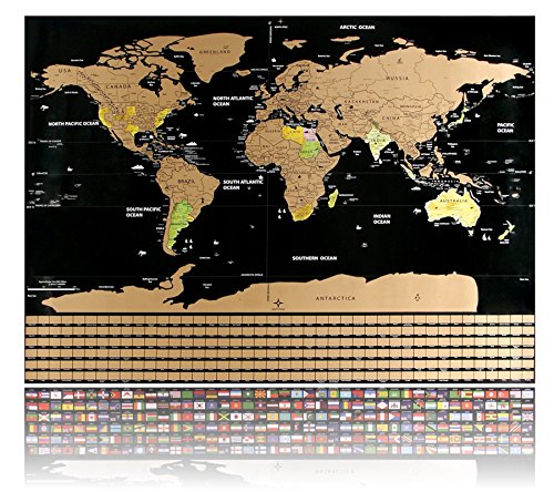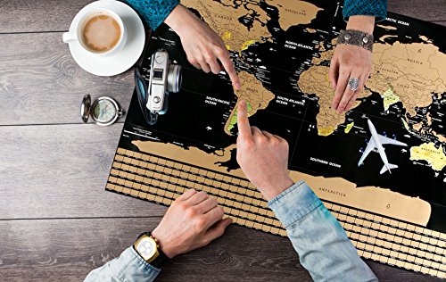 FEATURES & BENEFITS BEST QUALITY - Authentic & detailed 33 x 23 inches large & standard sized Scratch Off World Map Poster & Scratch Off Travel Map with high quality art paper and lamination to avoid scratches to the real map underneath the best quality scratch material.