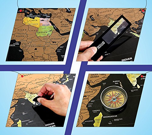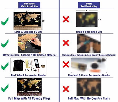 ATTRACTIVE BUNDLE - OffiCreative's attractive & valued Travel Scratch Off bundle pays you back in shape of accessories that includes Compass, Magnifier, Scratcher, Pins, Emotion & memory Stickers. We offer the largest bundle of World Scratch Map ever given on amazon & all other stores.