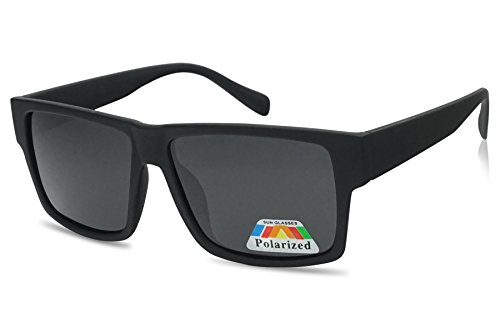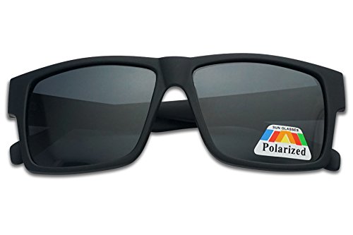 Square Flat Top Black Frame Polarized Sunglasses Casual Dark Lens Designer Inspired Glasses (Soft Black)
