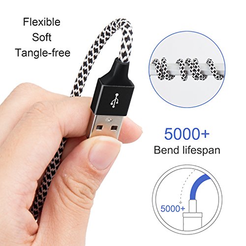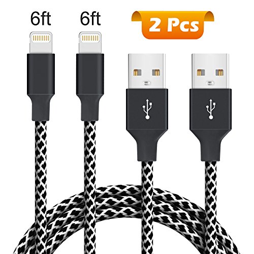 H.K.A 2Pcs 6ft Durable and Fast Charging Cable Cord to Nylon Braided Syncing Lightning for Apple iPhone 7 7 Plus 6 6s 6 Plus 6s Plus 5 5c 5s SE iPad and More iOS Devices (Black+White)