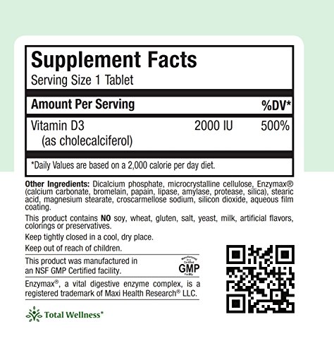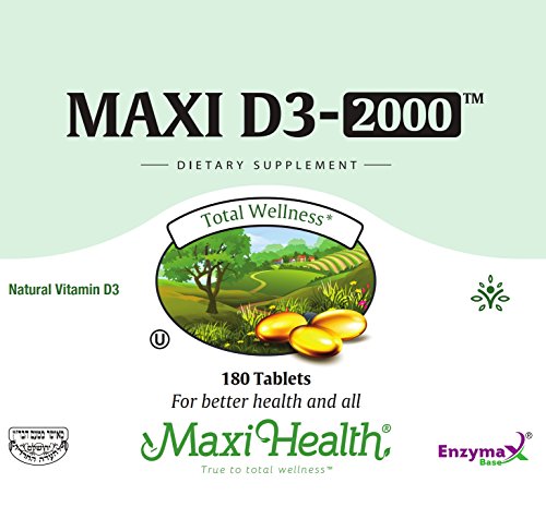 Maxi D3 2000 is your logical source for supplemental vitamin D. It supports calcium absorption in the gut and the mineralization of bones. Maxi D3 2000 is made with 2000 IU of vitamin D3, the most absorbable form of vitamin d. That is why you want vitamin D3 preferred over vitamin D2. Vitamin D is so important; many food products are fortified with it. If your goal is to have certain amount, you can only really be certain with supplementation. While your body, with enough sunlight can make its own D3, you would need to be in the sun every day. Not only that, as people age, the skin cannot synthesize vitamin D as efficiently. Those who are advised to avoid direct sunlight to protect their skin or keep covered for religious reason, also benefit greatly from supplementation. Try Maxi D3 2000 to support your health. Our uncompromising commitment to quality begins with selecting the finest raw materials from across the globe, to high standard manufacturing practices in GMP Certified and FDA registered Facilities, in the USA.All Maxi Health products are certified kosher, under the Orthodox Union (OU) and the Udvari Kashruth (UK). Legal Disclaimer: These statements have not been evaluated by the FDA. This Product is not intended to diagnose, treat, cure or prevent any disease.