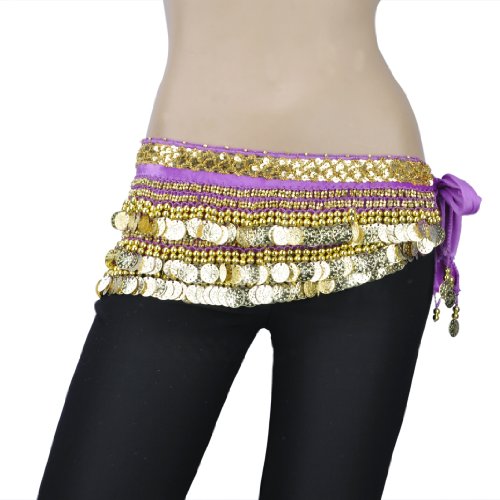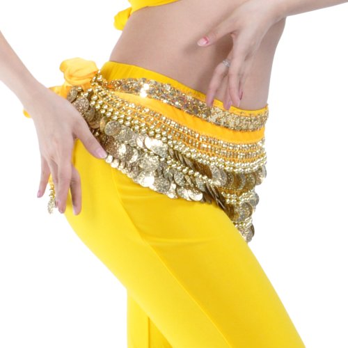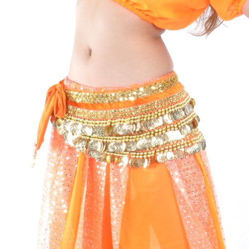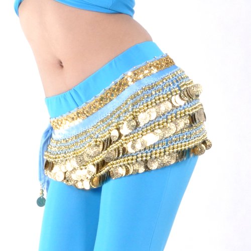 Features: ** Simple and perfect for practice or just as a fashion accessory! ** Beautiful color Egyptian belly dancing hip wraps hand crocheted delicately with multiple rows of gold beads and coins. ** Light weight and jingly, this scarf got all coins and beads hand stitched on highest quality chiffon. ** This scarf creates loud and lovely sound when the dancers move and shakes hip. ** Express your inner power, beauty and feminity in our designer belly dancing scarves, as a dancing tool, match with any outfit, shawl, head wrap etc. ** Wonderful over a bathing suit or as a belly dance wrap. ** Sheer and elegant you will be the Diva of the dance when you don this scarf. ** Enjoy and feel the glamour as you twirl and whirl in this scarf. ** All beads and coins are hand sewn, not mass produced!