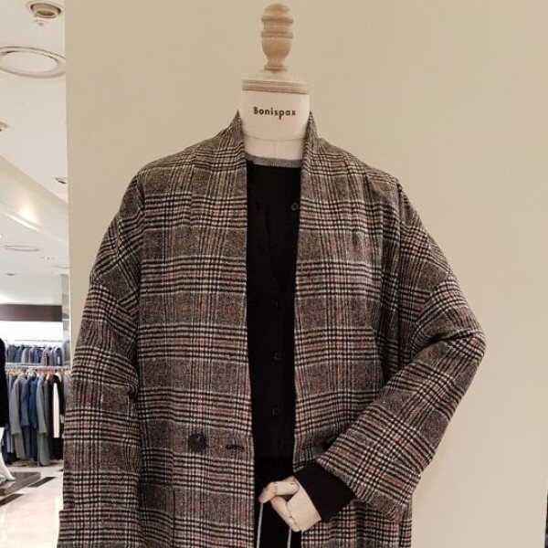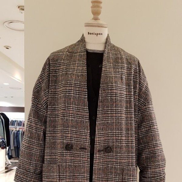 러프한 느낌의 오버핏 체크코트~~노카라,더블버튼으로 세련미를 더했으며 소매롤업으로 캐쥬얼함도 더했어요.아웃포켓으로 활용성도 좋은 상품이에요.밑단은 수술로 마무리하여 개성있는 아우터를 원하신분께 권해드립니다.총길이 103cm가슴둘레 110cm소매길이 60cm
