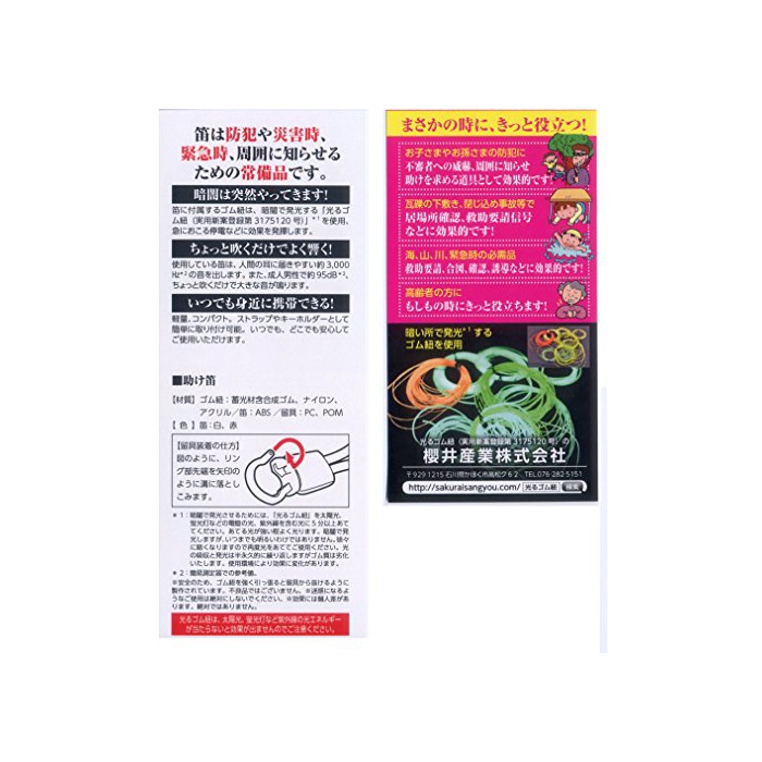 원본상품명: Sakurai Sangyo(サクライサンギョウ) 助け笛 ホワイト 笛音量:約3,000Hz 95dB