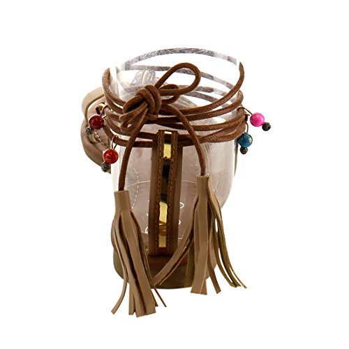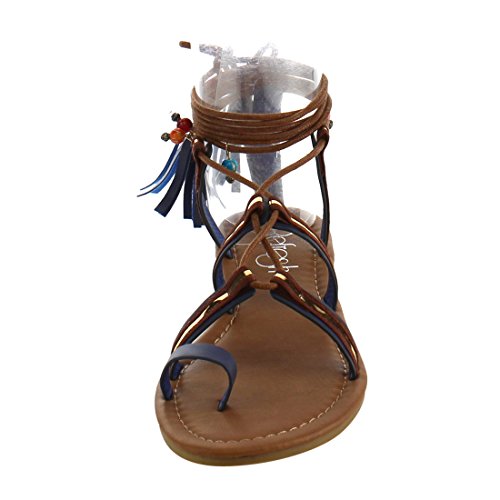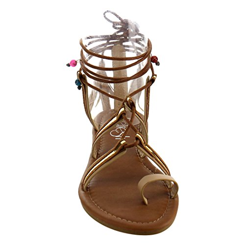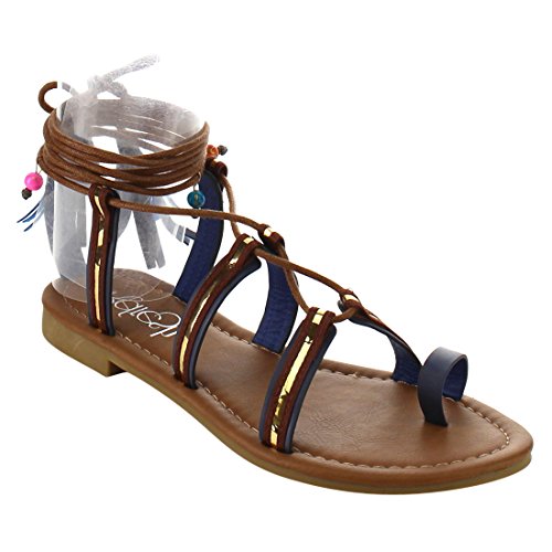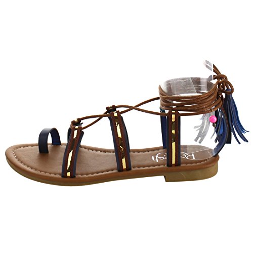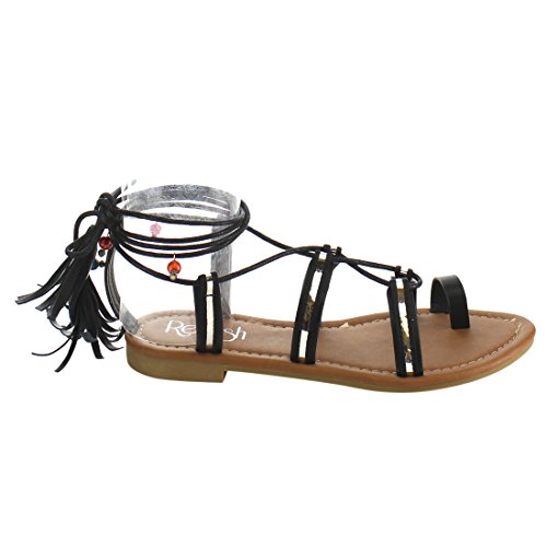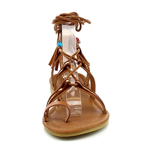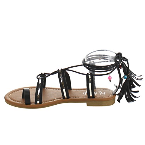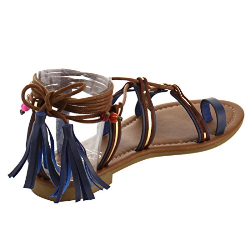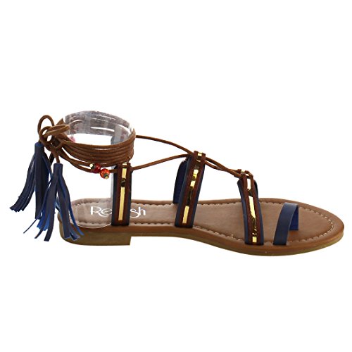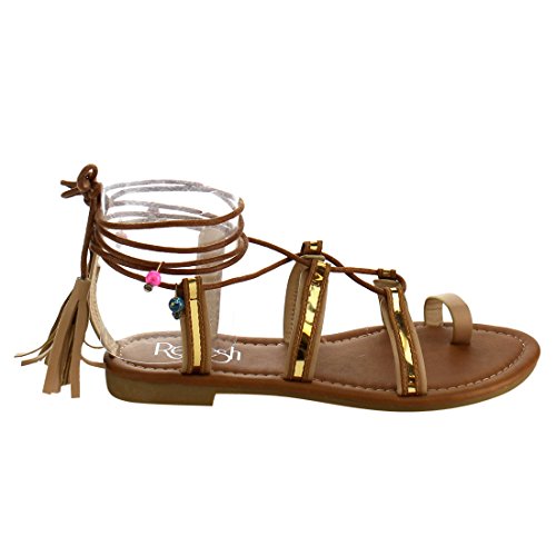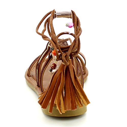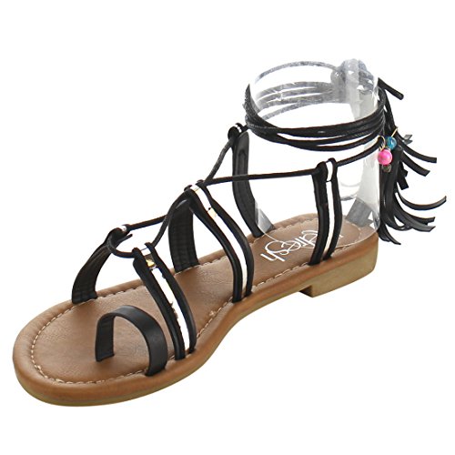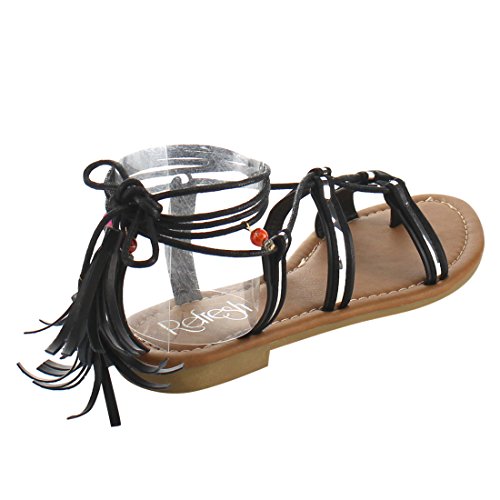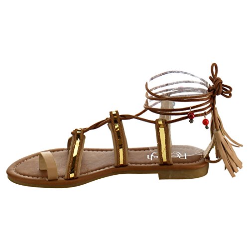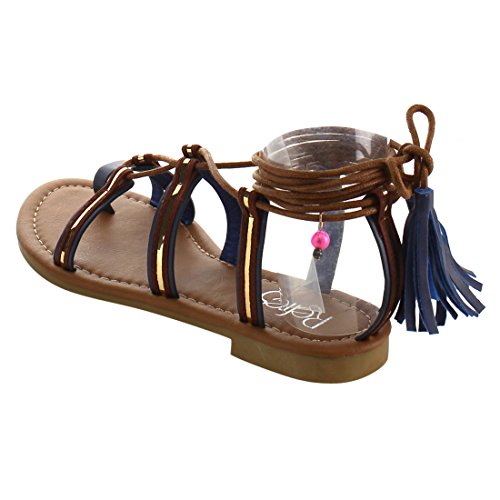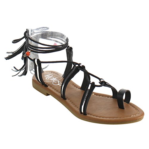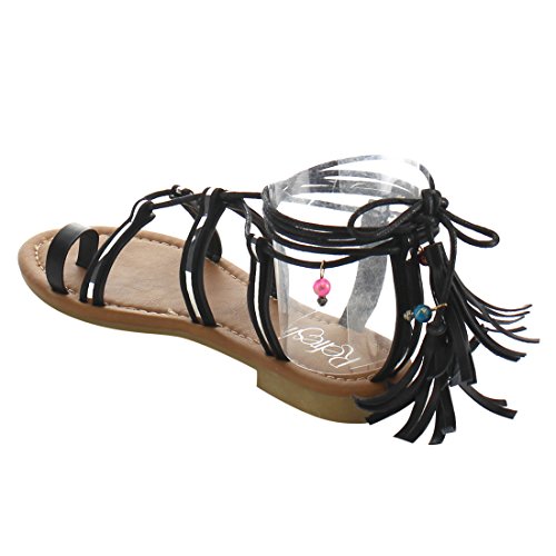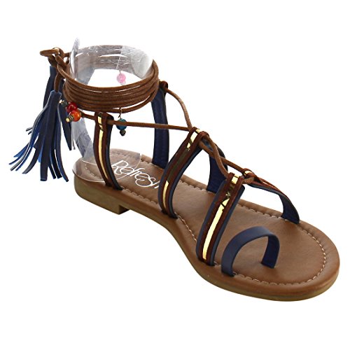 Refresh ID48 Women's Gladiator Strappy Lace Up Tassel Flat Beach Sandal