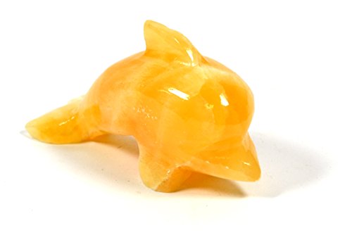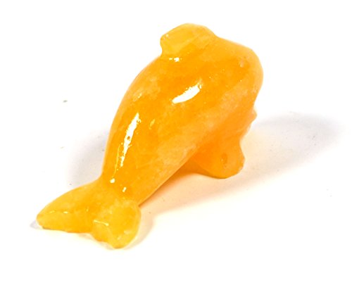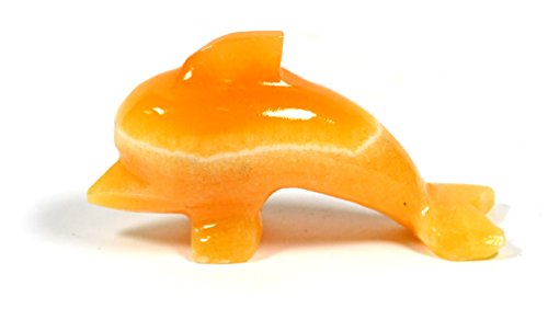 Brilliant Orange Stone Polished Dolphin Figure, 3" Long, Carved from Real North American Calcite - The Artisan Mined Series by hBAR