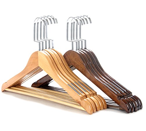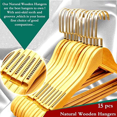 -. Title : Solid Wood Non-slip Suit Hangers HCHOME 15 Pack Anti-slip Wooden Hangers with Anti-skid Teeth, Non slip Bar and Precisely Cut Notches, 360 Degree Swivel Chrome Hook