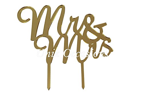 Gold Mirror Acrylic "Mr & Mrs" Cake Topper