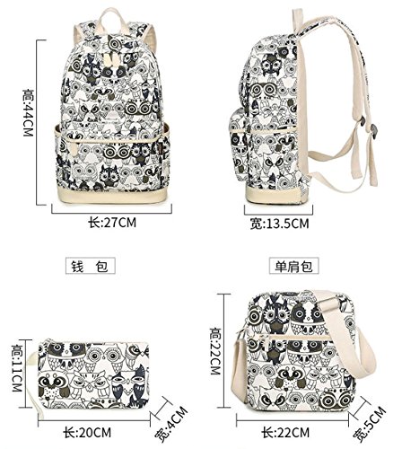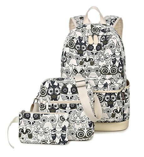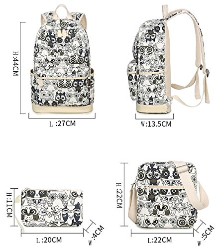 -. Title : Greeniris Damen Niedlich Segeltuch Schule Rucksack BookBags Eulen Laptop Taschen 3 Stück Set für Mädchen