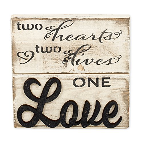 Two Hearts, Two Lives 7 X 7 Inch Wood Art Sign Plaque
