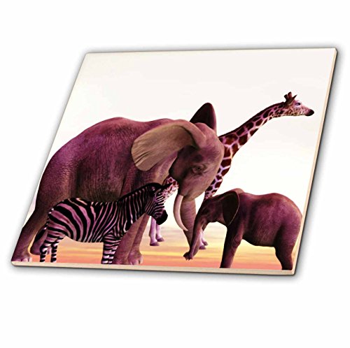 3dRose African Safari With Elephant, Giraffe, And Zebra - Ceramic Tile, 6-inch (ct_48977_2)