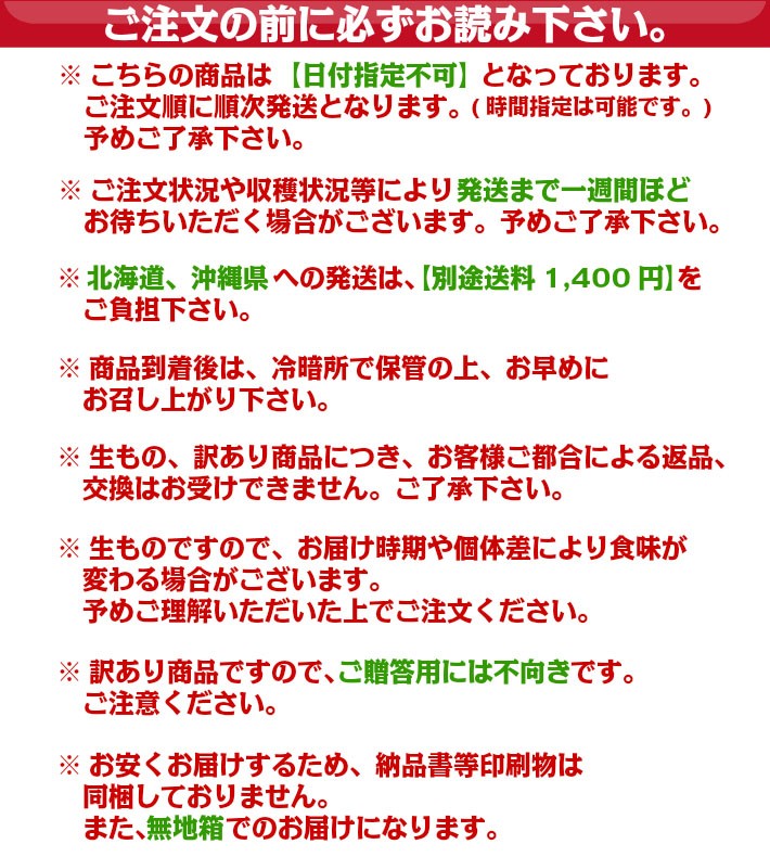 また、ご注文状況や収穫状況等により発送まで一週間ほどお待ちいただく場合がございます。予めご了承ください。