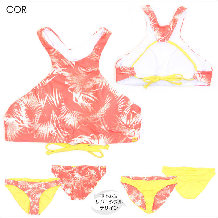 センターバックにシャーリングデザインが入ったボトムはフルカバースタイルで、気分に合わせて柄をチョイスできるリバーシブルです。