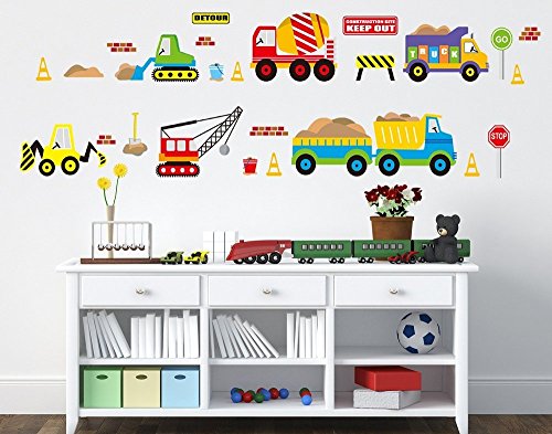 LiveGallery Removable Cute Cartoon Decorative DIY Car, Excavators, Bulldozers Peel & Stick Kids Toys Bedroom Bathroom Living room Nursery Room Classroom...