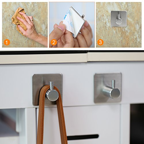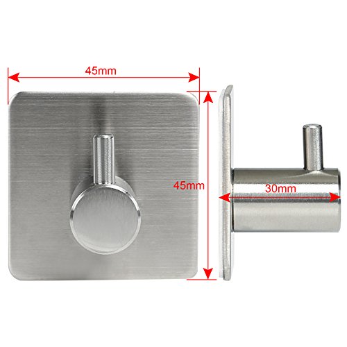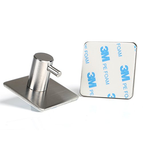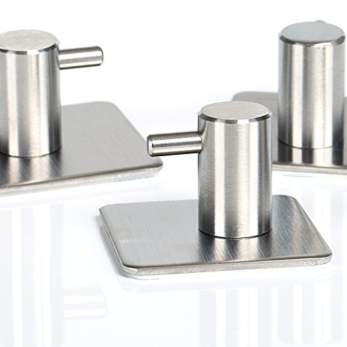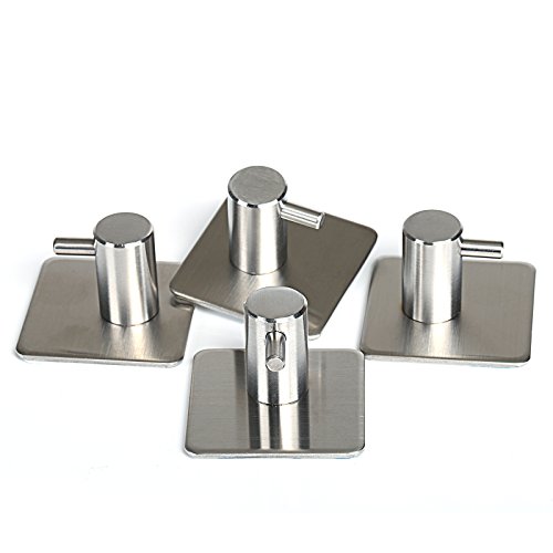 GWHOLE 4-Pack Robe/Towel Hook 3M Self Adhesive Stainless Steel Brushed Nickel Bathroom Kitchen Organizer