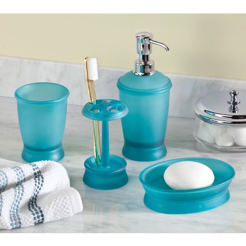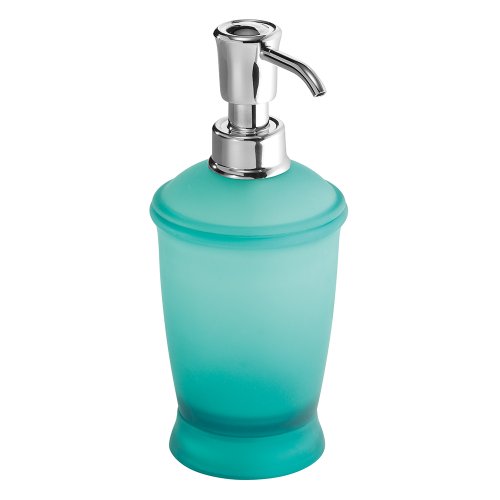InterDesign Franklin Liquid Soap & Lotion Dispenser Pump for Kitchen or Bathroom Countertops, Blue Frosted/Chrome