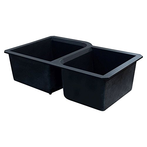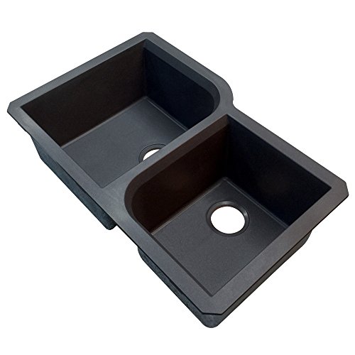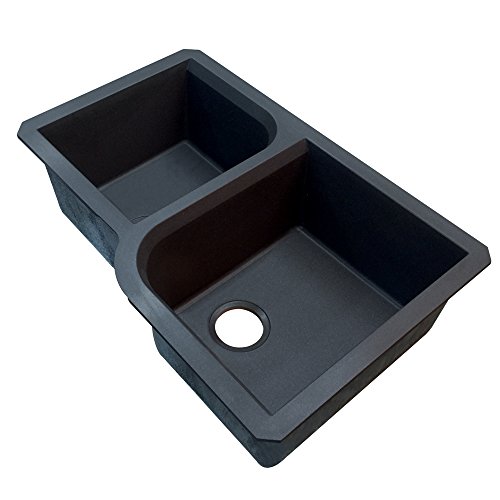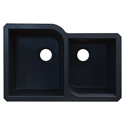 Transolid RUDO3120-09 Radius 31.75-in x 20.75-in x 9.5-in Granite 1-3/4 Offset Double Undermount Kitchen Sink, Black