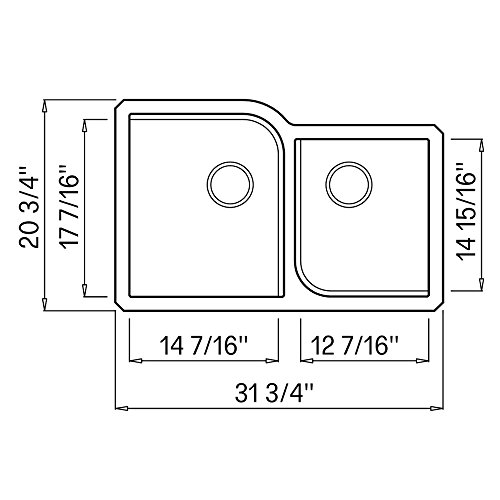 Overal Dimensions: 31.75" x 20.75" x 9.5" ; Inner Dimension (Left Bowl): 14.4375" x 17.4375" x 9"; Inner Dimension (Right Bowl): 12.4375" x 14.9375" x 9"; Minimum Cabinet Size: 33"